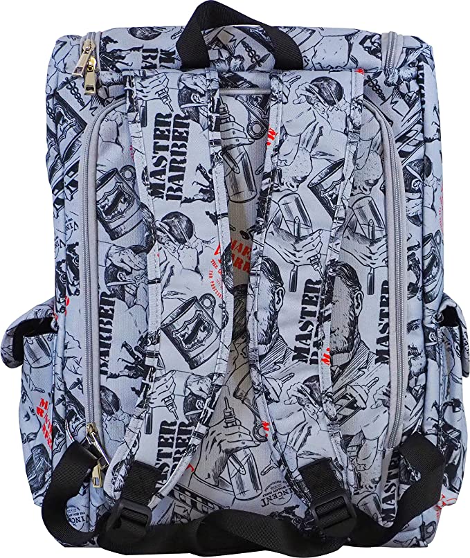 La mochila está hecha con la inspiración del barbero y sus herramientas. Tiene mucho espacio de almacenamiento para guardar fácilmente todas tus herramientas y accesorios de barbero. Tiene compartimentos para cortadoras, tijeras, peines, una computadora portátil o tableta y pequeños bolsillos para cables, cuchillas u otros artículos. Incluye divisores para mantener tus artículos organizados y acolchado adicional para mantenerlos todos protegidos.