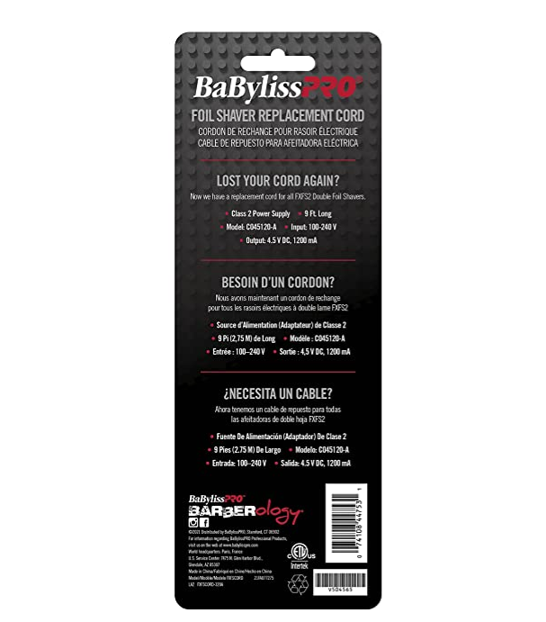 This Replacement Power Cord can be used with all FXFS2 and FXX3S Double Foil Shavers. Replacement Power cord for all BaBylissPRO FXFS2 Double Foil Shavers. For added portability or a lost power cord, keep this spare handy - works with all BaBylissPRO Double Foil Shavers