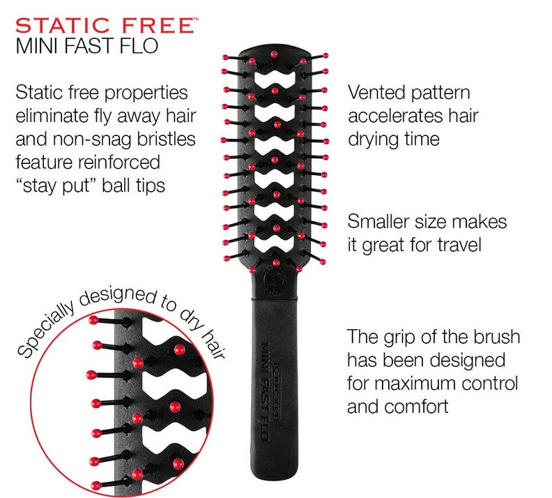Static Free™ brushes help eliminate fly away hair, have reinforced "stay-put" ball tips and non-slip grips for maximum control and comfort