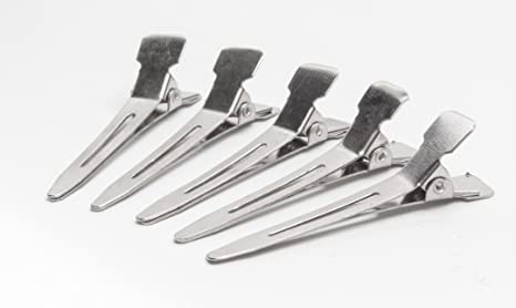 Single prong clips holds sections of hair during styling and cutting processes with extra-strong coil springs.