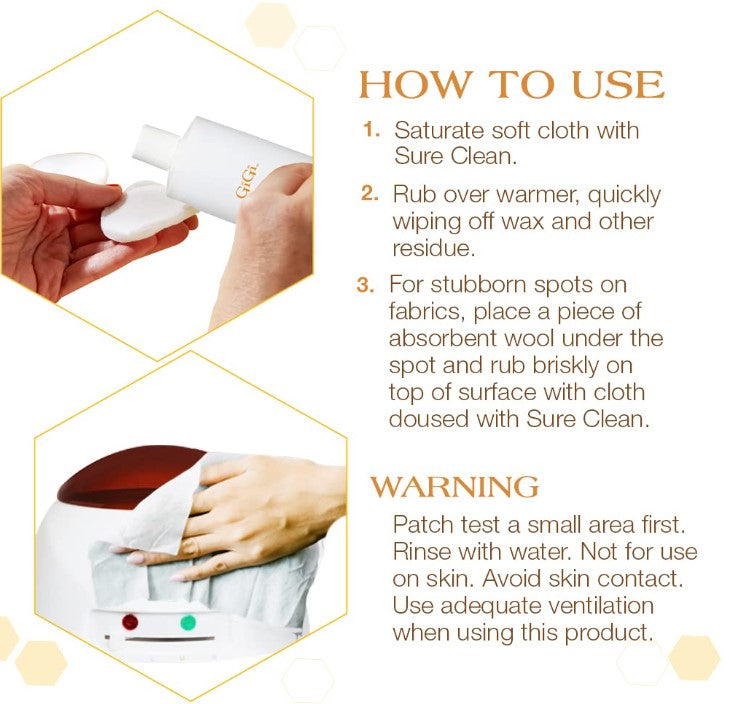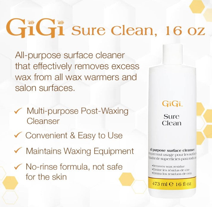 - GiGi Sure Clean is the fast and effective way for cleaning and maintaining all GiGi Warmers, as well as most salon surfaces