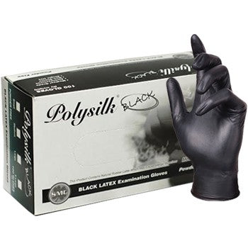 POLYSILK BLACK LATEX GLOVES 100 PK